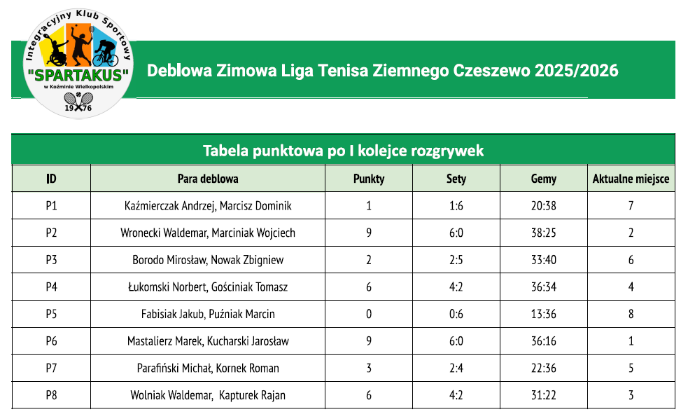 Jest nam niezmiernie miło poinformować, że Deblowa Zimowa Liga Tenisa Czeszewo 2025/2026 rozpoczyna obchody związane z przyszłorocznym jubileuszem 50-lecia istnienia naszego Klubu. Cieszymy się, że rozpoczynamy je chyba najlepiej jak można, czyli na sportowo w zaprzyjaźnionym tenisowym towarzystwie.